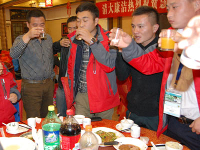 清大康洁王总与慧聪买家团共同举杯庆祝