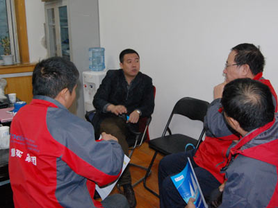 接下来,由于天气原因,买家团成员移步到室内的会议室,今天恰好来清大康洁进货的两位河北和北京的经销商朋友现场为大家分享了经验,买家团成员热情再次达到了沸点,纷纷向王忠海王总进行提问,并得到了王总的满意答复。