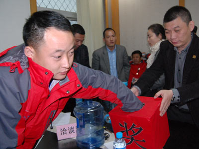 现场提问结束后,王总贴心的为有意向的买家团朋友准备了丰厚的大礼--现场抽奖,抽奖环节分别设置了1000元、2000元、3000元三个金额的代金券,订购产品直接可以抵用[FS:PAGE]现金,并且当日订购还可获得其他丰厚奖品,买家团朋友表现出浓厚的兴趣,纷纷一试手气。并有买家团成员当场达成合作。