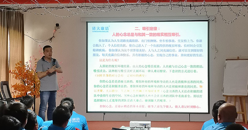 王忠海董事长为参训员工讲解“比风水厉害100倍的惊人定律”