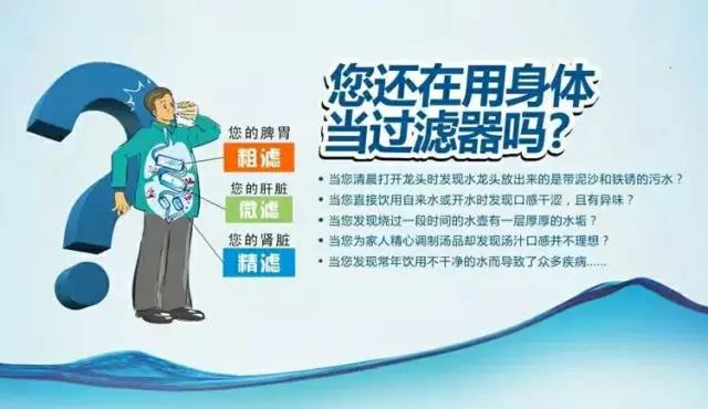 饮用含有杂质和污染物的水,其实就是拿自己的身体当过滤器,长此以往,会对身体造成不可估量的影响!